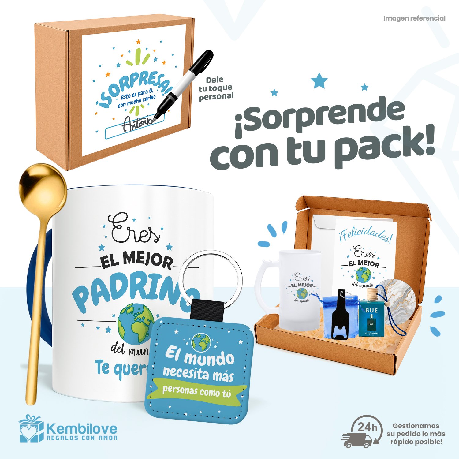 Si estás buscando ideas de regalo para padrino, este pack es una excelente opción. Combina utilidad, presentación y un toque especial en un solo producto.